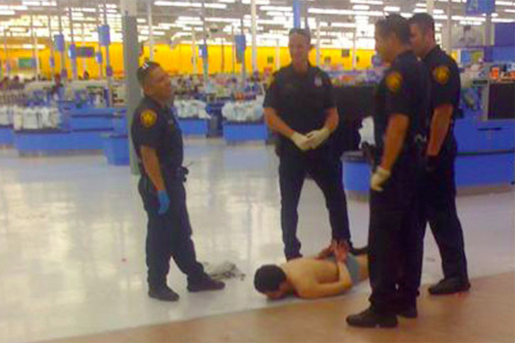 The police officers don’t look too thrilled that they had to wrangle this guy in because of his poor decision. They were at Walmart in no time, tracking this dude down. We can only imagine what charges were filed against him. We hope he learns a lesson from this.