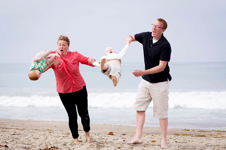 The mother looks startled, the father seems on the brink of laughing out loud, and the child looks like a bundled-up football. This scene really sums up the difficulties of trying to take a nice family photo. Even though it may not always be captured in the picture, this is the chaotic reality that goes on behind the scenes when you’re trying to get a child to pose.