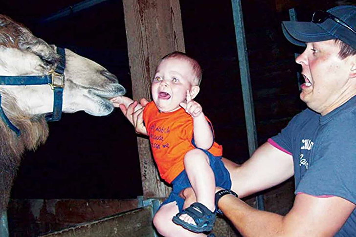 Which expression do you find more hilarious? The father’s or the baby’s? We’re not sure if that’s a horse or a camel, but either way, it seems really happy with its newly found delicious snack. We get it—vacations can be pretty expensive. But we really have to say, feeding your kids to animals is definitely not a good way to save money.