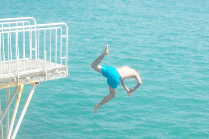 It’s clear that this person doesn’t have a future in Olympic diving. But what he does have in store is a really painful belly flop. Jumping from that height, the result is bound to be quite uncomfortable. However, his discomfort gives us something to laugh at, turning his bad luck into a funny photo—unfortunately for him, though!