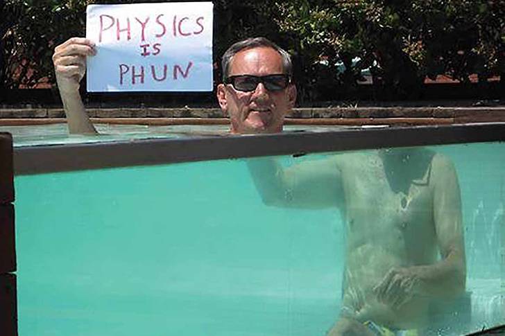 Even though vacations are supposed to be a break from schoolwork, we can make an exception here because this is just too funny. The man in the picture is either pretending to be the headless horseman during his free time or showing that he really understands how light refracts in water. This creative way of showing it is a really interesting and funny way to explain a scientific concept!