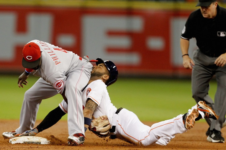 Captured in this make-or-break moment: the photographer freezes him mid-slide as he touches base while simultaneously twisting his body into what appears to be a painful pretzel. His face shows equal parts determination and “Why me now?” expression. Classic proof that “safe” calls often come down to millimeters – and sometimes involve sudden discomfort. But hey, winners gladly make that sacrifice!