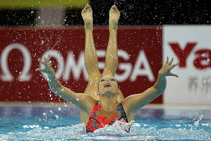Eerily perfect: Are these synchronized swimmers or underwater acrobats? Their mirrored movements create a mind-bending optical illusion. Are we seeing two separate athletes or one “superwoman” with elongated proportions?
