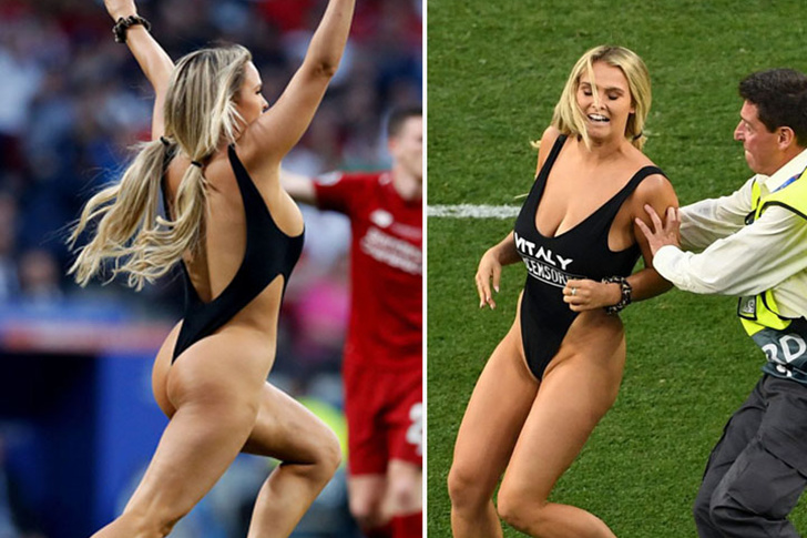 Sporting events always attract wild antics: spectacular costumes, giant banners – fans love to express themselves. But even here, there are limits. The woman in the picture seemed to spontaneously cross them: she stormed onto the field wearing nothing but a tiny swimsuit.
