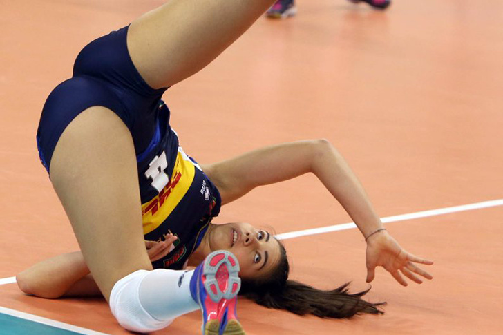 In volleyball, keeping the ball alive is everything – and sometimes that requires wild dives and floor burns. This player proves she never loses sight of the ball, even when flipping mid-air to make the save.