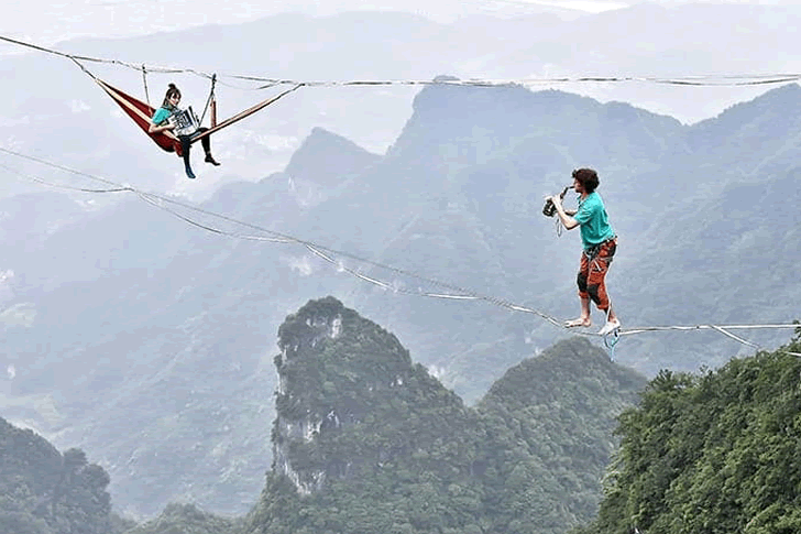 The people you see in the photo are wearing harnesses, but even with that, it’s still terrifying. So, why are they up there in the first place? These individuals are part of a slacklining music group called Houle Douce, and the photo is from 2018. These two were rehearsing for an aerial performance in Zhangjiajie National Forest Park in Hunan Province, China. At 1,400 meters above sea level, the two demonstrated courage and talent while the world watched. No doubt, these two deserve recognition for their work.