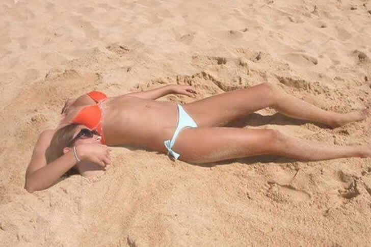 This clever optical illusion—where someone appears to be sunbathing without a head—is equal parts creepy and hilarious. It's the perfect mix of beach fun with a touch of spooky surrealism. A tanning session you won't soon forget!