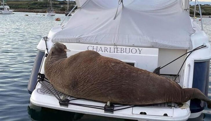 Who needs a fancy yacht when you have a walrus to upstage all luxury on board? Meet the unexpected guest of the white boat ‘Charliebuoy’—a walrus, blissfully asleep, belly up to the sky, embracing the boat-life with unparalleled gusto. There it is, sprawled out without a care in the world, its whiskers twitching in the gentle sea breeze, as if dreaming of vast oceans and fish feasts.